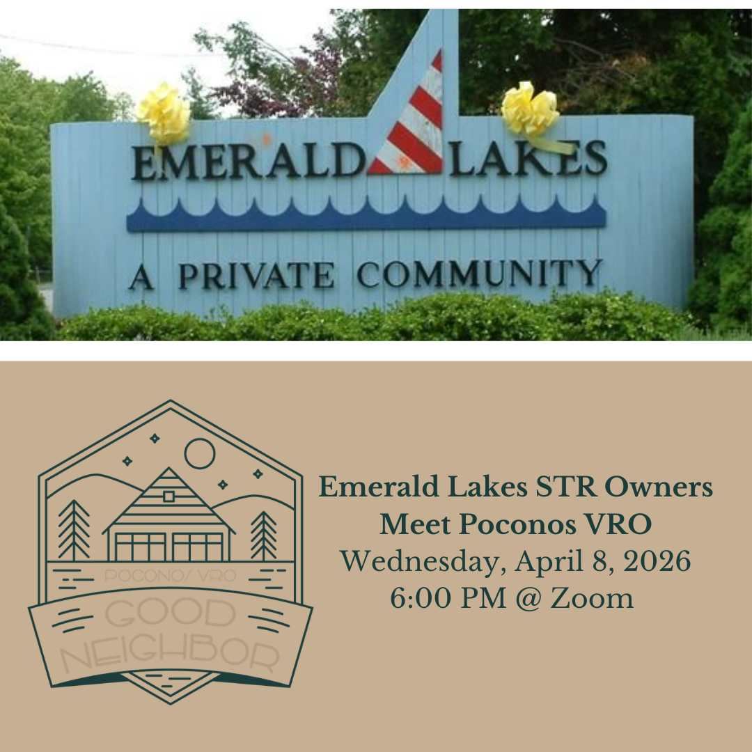 Address Poconos Association of Vacation Rental Owners Contact info@PoconosVRO.org Follow Us | Quick Nav Legal © 2026. Poconos Association of Vacation Rental Owners is a 501(c)6 non-profit organization. |